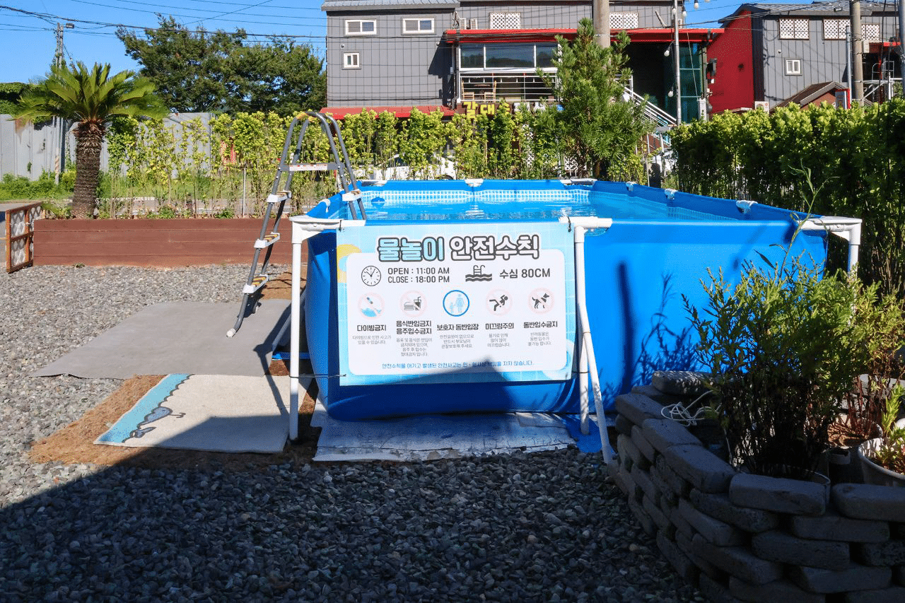 부대시설 스테이순천은 머무는 동안 더욱 편안하고 즐거운 시간을 보내실 수 있도록 개별 바비큐 공간, 공용 캠프파이어 불멍장, 여름 시즌 수영장을 운영하고 있습니다. 개별 바비큐 *사전예약제 운영(꼭 미리 예약해주세요)숯,그릴 신청 2~4인기준 30,000원(사전예약)대형룸 8인 신청 50,000원(사전예약) 캠프파이어(불멍장) 캠프파이어 불멍장은 스테이순천 숙박 고객 전용 공간으로, 머무는 동안 함께 모여 편안한 시간을 즐길 수 있는 무료 공용 공간입니다.해당 공간은 야외 바비큐를 이용하시는 고객님께 제공되는 서비스로, 따뜻한 불빛과 함께 여유로운 대화를 나누며하루를 마무리하기에 좋은 분위기를 선사합니다.자연 속에서 불멍과 바비큐를 함께 즐기며여행의 소중한 추억을 만들어보세요. 수영장(여름철운영) 수심 80cm / 길이 4.5m x 너비 2.2m수심 약 80cm로 비교적 얕아아이를 동반한 가족이나 가벼운 물놀이를 즐기기에 적합하며,길이 4.5m × 너비 2.2m의 아담한 크기로프라이빗하고 안전한 이용이 가능합니다.맑은 하늘 아래에서 즐기는 물놀이로여름 여행의 즐거운 추억을 더해보세요.